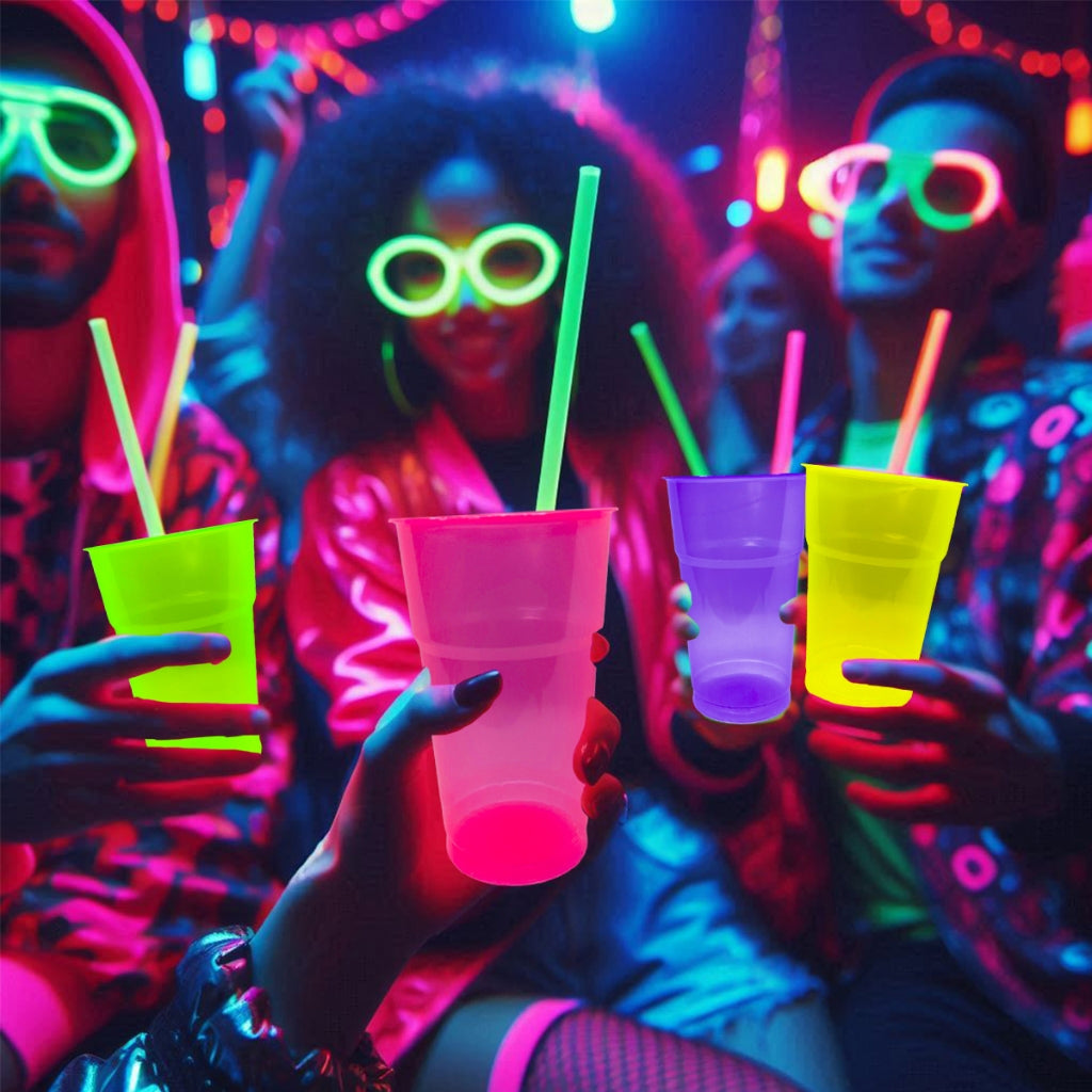 Adicione um toque vibrante e divertido às suas festas e baladas com o Copo Neon 300 ml! Perfeito para qualquer celebração, este copo é ideal para criar um ambiente alegre e descontraído, destacando-se sob luzes neon e UV.