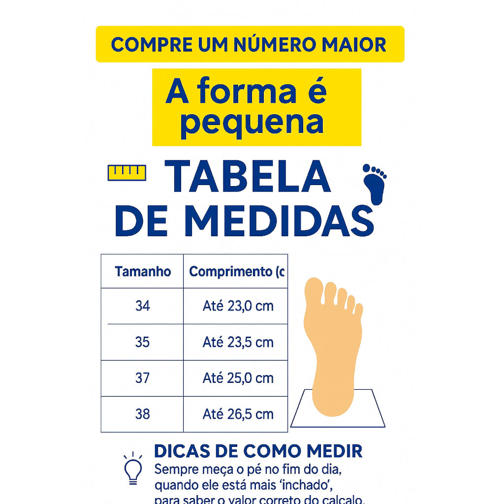 - Variedade de tamanhos para o ajuste perfeito, evitando trocas e garantindo satisfação